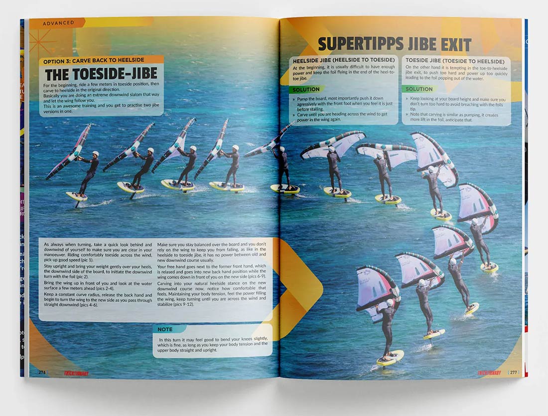 Autor publikacji, Michi Rossmeier – jeden z pionierów wingfoila i twórca cenionej na całym świecie serii Tricktionary – łączy w niej wieloletnią praktykę, setki godzin szkoleniowych oraz doświadczenie zdobyte we współpracy zarówno z ambitnymi freeriderami, jak i zawodowymi sportowcami. Efektem jest podręcznik, który prowadzi czytelnika krok po kroku: od pierwszego startu na foilu, przez płynne zwroty, aż po dynamiczne manewry carvingowe.